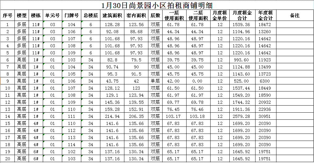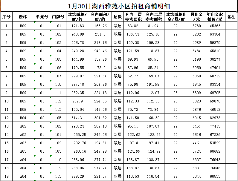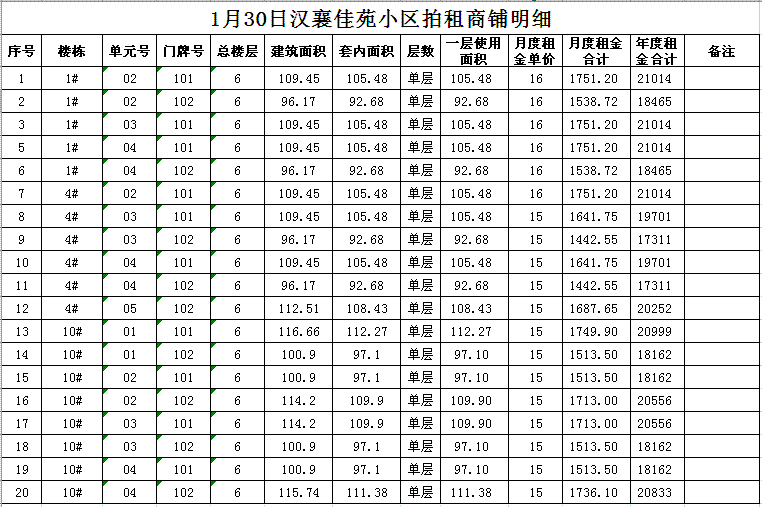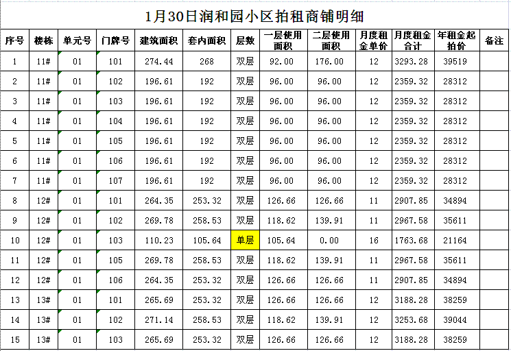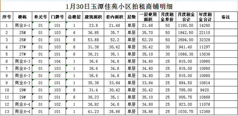 我公司受委托,定于2018年1月30日10時(shí)在本公司拍賣廳對(duì)以下小區(qū)門面房進(jìn)行公開拍租: