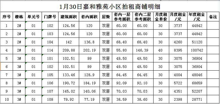 拍租門面房共有數(shù)十套,均為空房,房屋面積分別為數(shù)十至數(shù)百平方米不等。租賃期限均為3年。