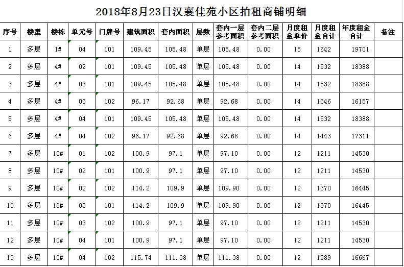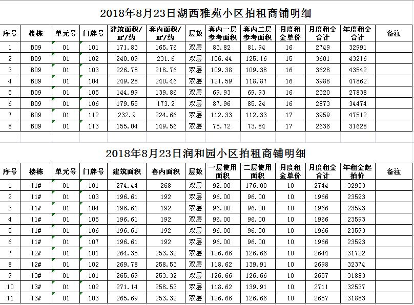 我公司受委托,定于2018年8月23日10時(shí)在中山南路55號(hào)本公司拍賣廳對(duì)以下小區(qū)商鋪公開拍租:湖西雅苑、和風(fēng)雅致、漢襄佳苑、尚景園、潤(rùn)和園、嘉和雅苑等。商鋪共數(shù)十套,均為空房,面積分別為一百至數(shù)百平方米不等。租期均為3年。