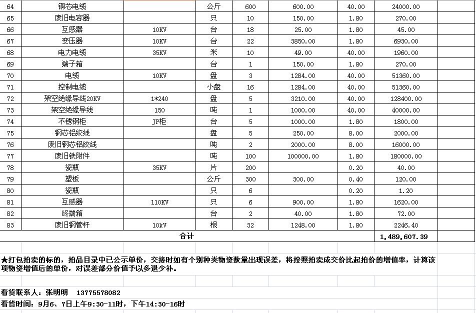 拍賣標(biāo)的主要包括:鐵塔、角鋼塔、鋼管桿、鋼芯鋁絞線、電纜、變壓器、金具等。