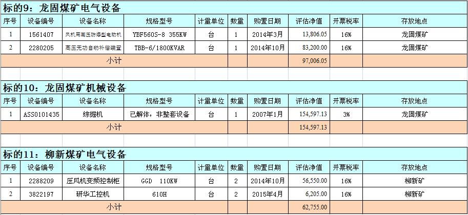 關(guān)注微信公眾號我公司受委托,定于2018年9月18日10時在徐州市中山南路55號副樓三樓本公司拍賣大廳公開拍賣:徐州市馬莊煤礦、大劉煤礦、龍固煤礦、沛城煤礦、柳新煤礦的二手設(shè)備一批。