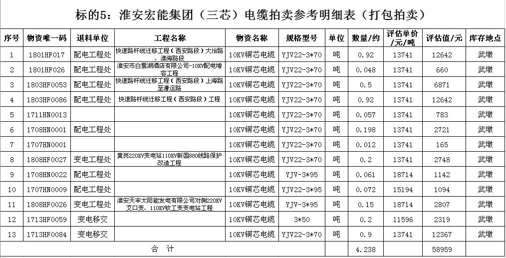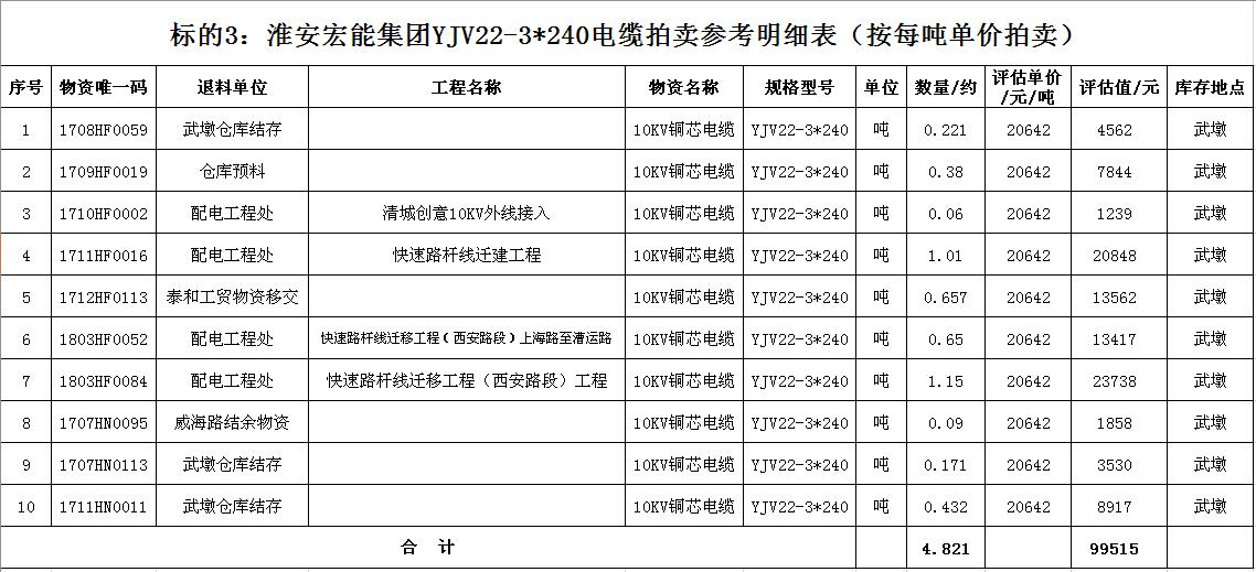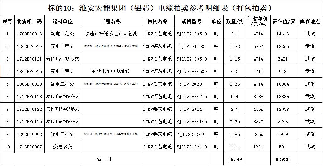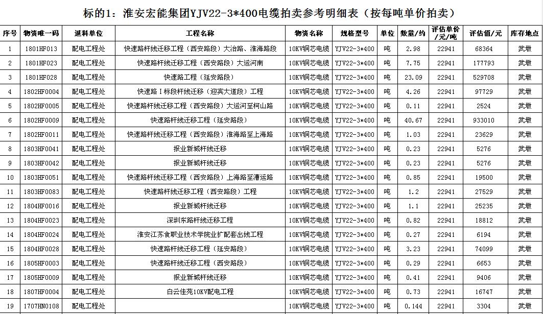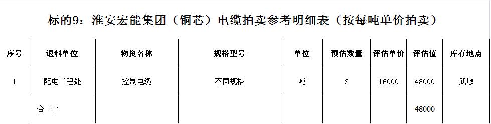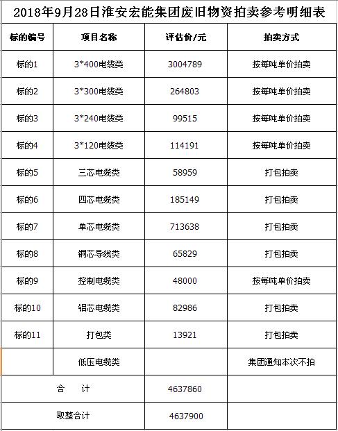 關(guān)注微信公眾號受淮安宏能集團有限公司委托,我公司將通過中國拍賣行業(yè)協(xié)會網(wǎng)絡(luò)拍賣平臺以網(wǎng)絡(luò)競價的方式公開拍賣廢舊物資一批,主要包括:各型電纜,計算機、打印機等辦公用品(詳見拍品目錄)。