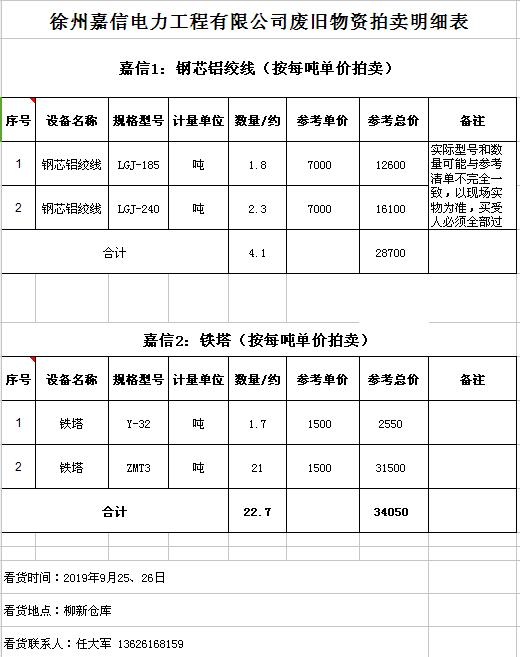 關(guān)注微信公眾號(hào)受委托,我公司將通過(guò)中國(guó)拍賣行業(yè)協(xié)會(huì)網(wǎng)絡(luò)拍賣平臺(tái)以網(wǎng)絡(luò)競(jìng)價(jià)的方式公開(kāi)拍賣廢舊電力物資一批,主要包括:電纜、導(dǎo)線、廢舊鋼材、鋼芯鋁絞線、金具、雜品、機(jī)具、空調(diào)、辦公設(shè)備等。