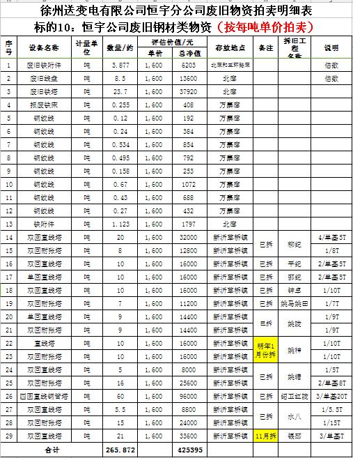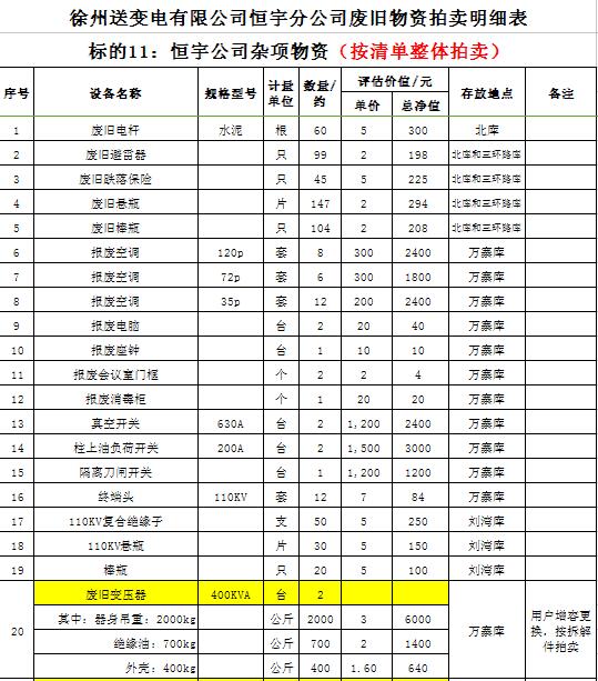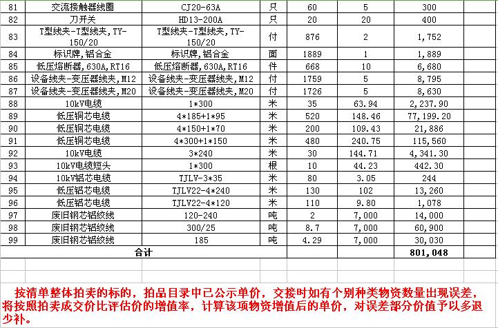 關(guān)注微信公眾號(hào)受委托,我公司將通過(guò)中國(guó)拍賣(mài)行業(yè)協(xié)會(huì)網(wǎng)絡(luò)拍賣(mài)平臺(tái)以網(wǎng)絡(luò)競(jìng)價(jià)的方式公開(kāi)拍賣(mài)以下公司廢舊電力物資。主要包含:廢銅排下腳料、廢不銹鋼、辦公設(shè)備等;架空絕緣導(dǎo)線(xiàn)、電纜、金具、角鋼塔、鋼芯鋁絞線(xiàn)、開(kāi)關(guān)、互感器、變壓器散件等。