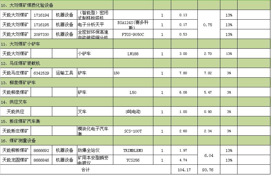 裝載機(jī)、通風(fēng)機(jī)、綜掘機(jī)、變壓器、鏟車、叉車、排沙泵、汽車衡、繪圖儀、救護(hù)設(shè)備、機(jī)械加工設(shè)備、測(cè)量設(shè)備等。