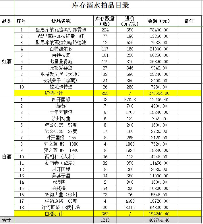 關(guān)注微信公眾號(hào)受委托,我公司定于2021年1月11日10時(shí)在中拍平臺(tái)公開拍賣:庫(kù)存精品紅酒、白酒一批。該批酒類為單位庫(kù)存接待用酒,均有進(jìn)貨發(fā)票,部分為收藏酒。
